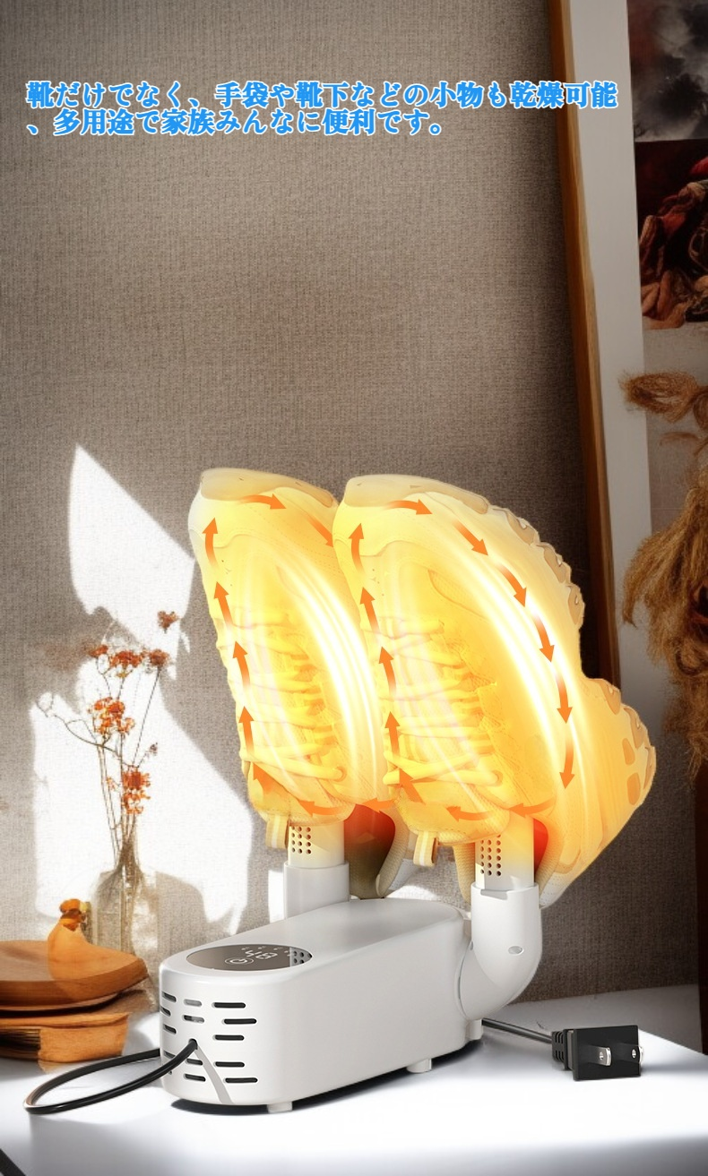 ● 靴だけでなく、手袋や靴下などの小物も乾燥可能、多用途で家族みんなに便利です。
